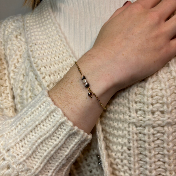 Armband 3 steentjes - Stainless Steel - Gemstones - Goud/Zilver
