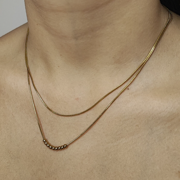 Ketting dubbel met bolletjes | Stainless steel | Goud