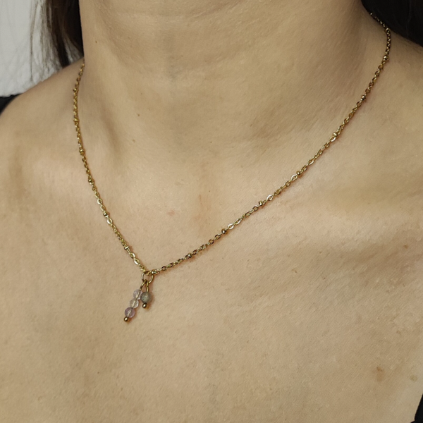 Ketting bolletjes hanger en steentje | Stainless Steel | Gemstones | Goud